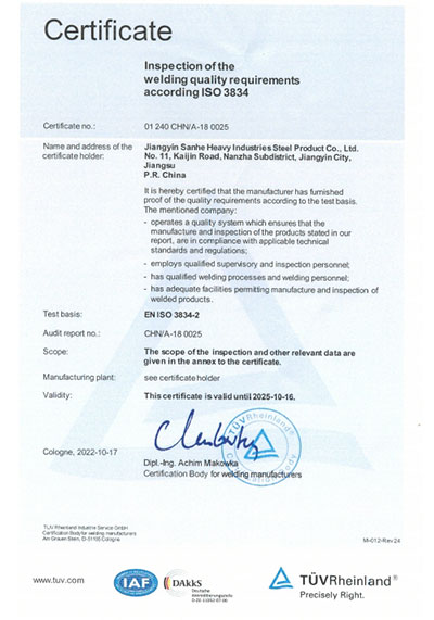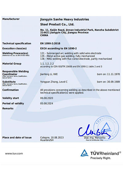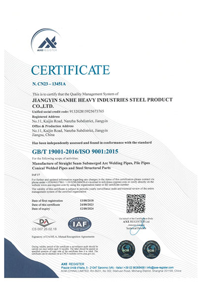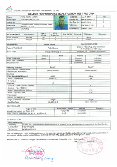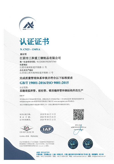江陰市三和重工鋼制品有限公司成立于2012年3月,總投資1.2億,坐落于江蘇省江陰市南閘錦南工業(yè)區(qū),占地4萬(wàn)平方米,廠房面積3萬(wàn)平方米。專業(yè)從事大口徑厚壁直縫埋弧焊接(LSAW)鋼管、方管、錐管,RBE卷制埋弧焊接鋼管的研發(fā)、生產(chǎn)和銷售。公司憑借著嚴(yán)謹(jǐn)?shù)漠a(chǎn)品質(zhì)量管理,先后通過(guò)了ISO三體系認(rèn)證,RS、BV等船社級(jí)工廠認(rèn)證,同時(shí)取得了CE CPR,API2B等歐美地區(qū)資質(zhì)認(rèn)證。公司擁有一條完整的,可以生產(chǎn)單支長(zhǎng)度達(dá)到12米的JCO直縫埋弧焊鋼管生產(chǎn)線(品牌:美國(guó)林肯) ,3套卷管生產(chǎn)線以及異型管生產(chǎn)線。公司主要產(chǎn)品有各種大小厚壁直縫埋弧焊管、卷管、方管、矩形管、錐管、多邊形管等,主要以厚壁管為主。可按國(guó)家標(biāo)準(zhǔn)GB9711 、GB50250 系列 ,國(guó)際標(biāo)準(zhǔn)API? SPEC 2B及EN10210、EN10219、EN10208、 A671、A672等生產(chǎn)各種規(guī)格鋼管,年綜合產(chǎn)能達(dá)20萬(wàn)噸,產(chǎn)品廣泛應(yīng)用于海上 石油鉆井平臺(tái)、輸煤漿、輸水、特高壓輸電鐵塔電,石油化工、高層建筑鋼結(jié)構(gòu)建筑工程、大型海洋碼頭樁管等領(lǐng)域。公司擁有一支由我國(guó)制管行業(yè)領(lǐng)先的技術(shù)團(tuán)隊(duì),并與國(guó)內(nèi)制管技術(shù)與工藝方面的專家、科研院所建立了密切的合作關(guān)系, 研發(fā)能力處于國(guó)內(nèi)先進(jìn)水平,專門生產(chǎn)厚壁鋼管。為擴(kuò)大產(chǎn)能,滿足對(duì)客戶長(zhǎng)直管的需求,2023年11月30日,在靖江:江陰-靖江工業(yè)園區(qū)成立了三和重工的全資子公司:江陰市永祥鋼制品有限公司,可以對(duì)接環(huán)焊總長(zhǎng)超過(guò)三十米的焊接鋼管及各類型鋼結(jié)構(gòu)產(chǎn)品。江陰市三和重工鋼制品有限公司扎根于江陰,放眼于全球,通過(guò)持續(xù)的產(chǎn)業(yè)規(guī)模擴(kuò)張和技術(shù)提升,立志成為大直縫埋弧焊管行業(yè)具有國(guó)際影響力的企業(yè)。